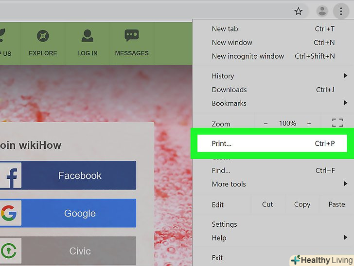 НатиснітьДрук. Відкриється вікно «Друк». Праворуч у вікні відобразиться попередній перегляд веб-сторінки, де можна побачити, як зміниться розташування елементів сторінки при друку.- Також можна натиснутиCtrl+P (Windows) або ⌘ Cmd+P (Mac).