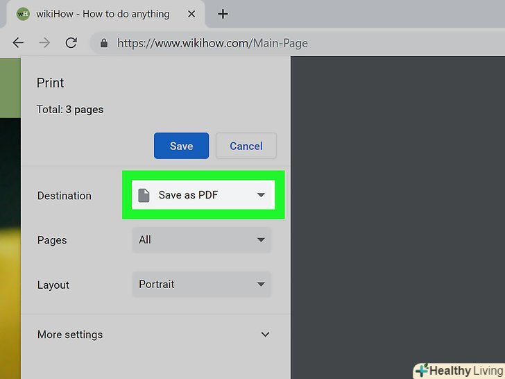 ВиберітьЗберегти як PDF В меню «Принтер». ви знайдете це меню на лівій панелі вікна; в меню перераховані всі доступні принтери. Якщо вибрати "Зберегти як PDF", сторінка не буде роздрукована — вона буде збережена як PDF-файл.