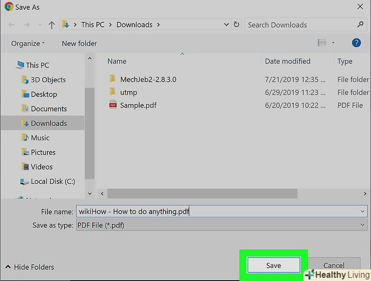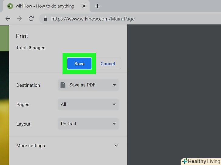 НатиснітьЗберегти. ця кнопка знаходиться в правому нижньому кутку вікна. Веб-сторінка буде збережена у форматі PDF. Двічі клацніть по PDF-файлу у вказаній вами папці, щоб відкрити його.[1]