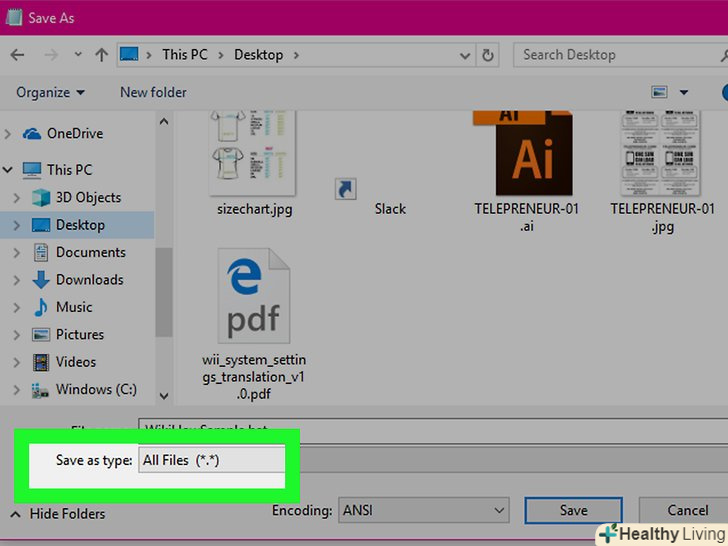 НатиснітьЗберегти як.ця опція знаходиться в меню "Файл". Відкриється вікно "Зберегти як".