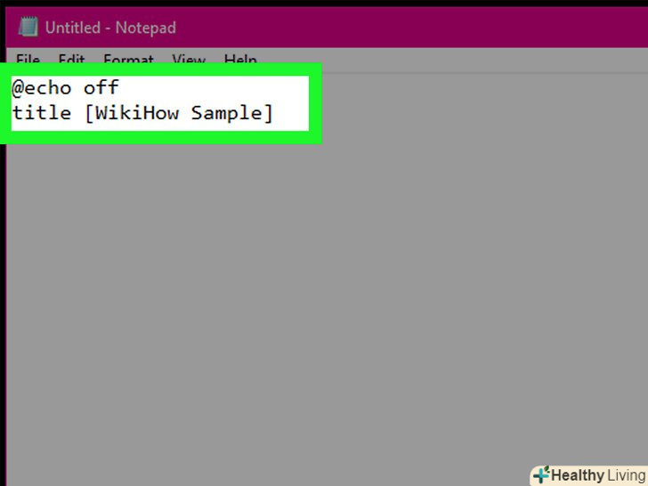Введіть назву гри. Скопіюйте наступний текст в Блокнот — замість [Назва] введіть назву гри, а потім натисніть ↵ Enter:[1]@Echo off Title [Назва]