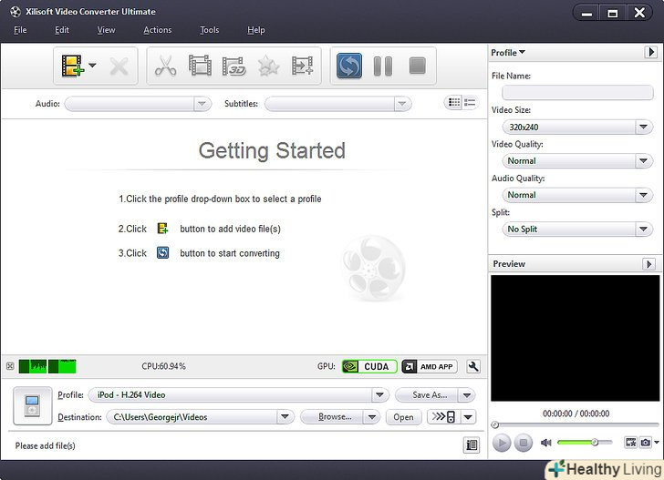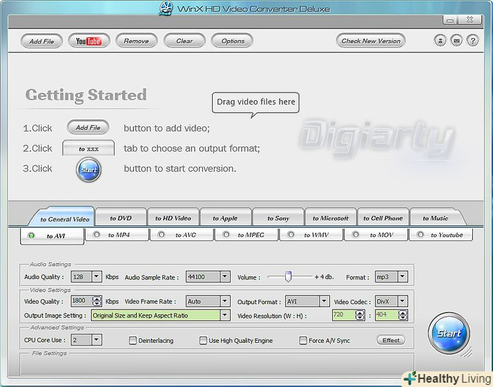 Відповідно до інструкцій для конвертації введіть файл AVI в програму.у більшості програм є опція "Add files", або файли можна просто перетягнути мишею.