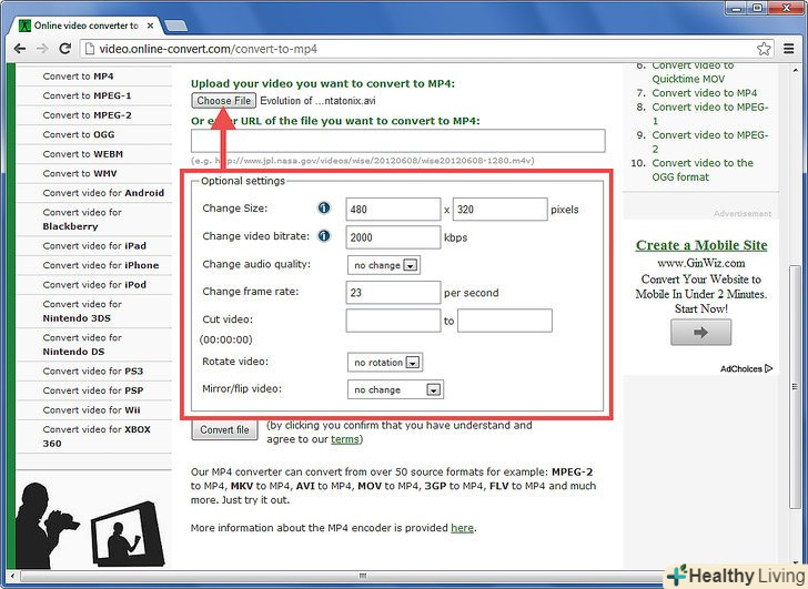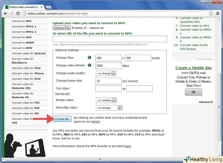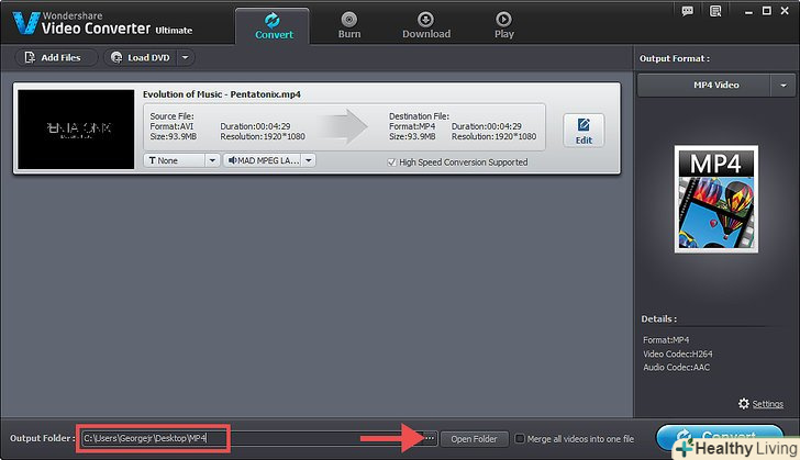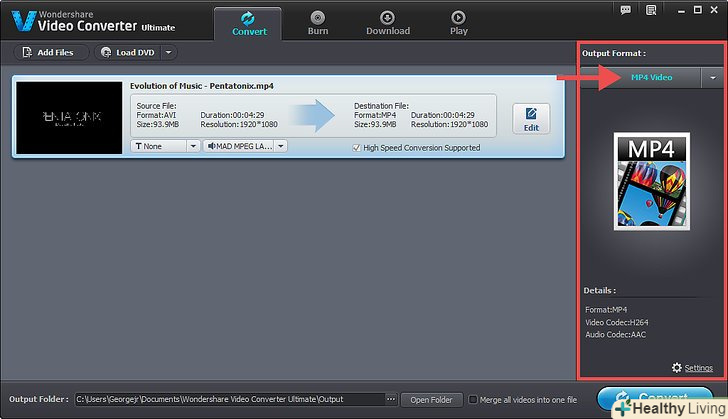Форматом виводу поставте MP4. при необхідності налаштуйте додаткові параметри (розмір, дозвіл, кодек і т.д.) в меню налаштувань, якщо таке є у вашій програмі.