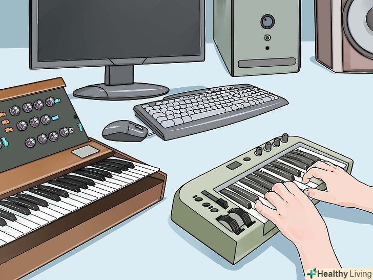Встановіть хороше звукове обладнання.використовуючи вбудовану звукову карту і недорогий мікрофон, можна створювати досить хорошу електронну музику. Проте, якщо у вас є можливість, постарайтеся придбати наступні аксесуари:- Звукова карта. Якщо ви збираєтеся багато записувати, рекомендується використовувати спеціальну звукову карту.[16]