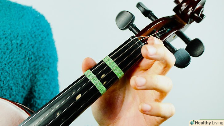 - Як тільки смичок дійде до кінця, опустіть вказівний палець.весь фокус в тому, щоб точно знати, куди ставити пальці. Поставте палець точно на край лада. Перемістіть його трохи нижче. Ось тут і повинен стояти ваш вказівний палець.