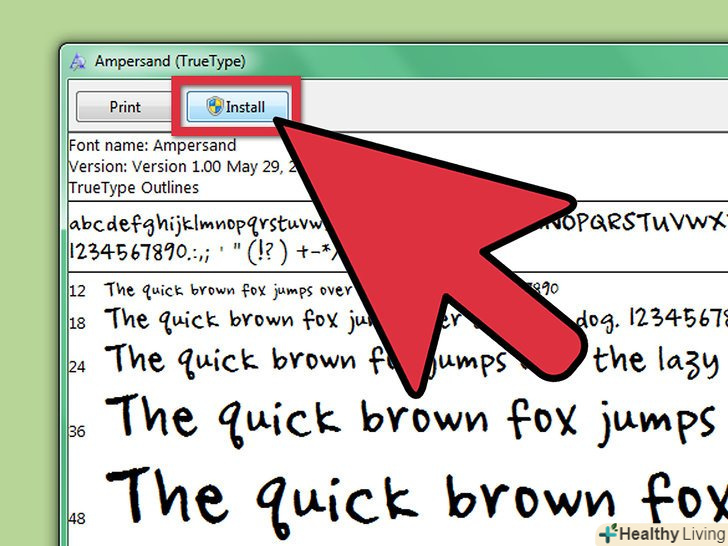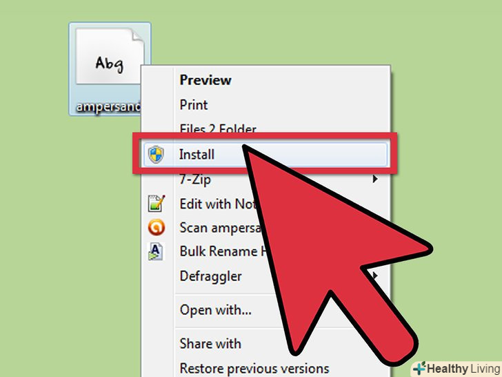 Відкрийте файл шрифту та встановіть його. Відкрийте файл шрифту та встановіть його.- Клацніть правою кнопкою миші на шрифт, який ви хочете встановити.