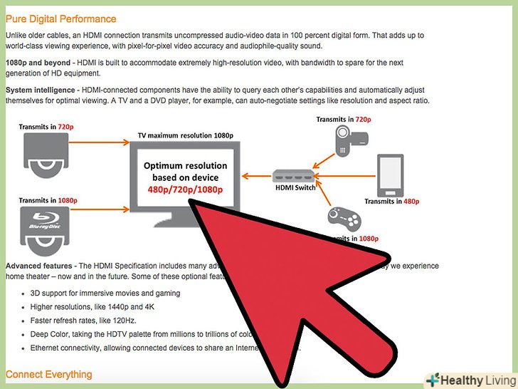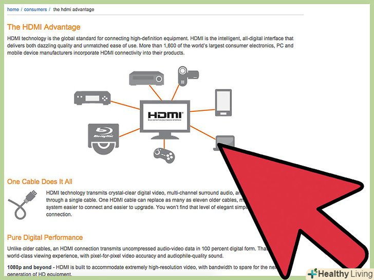 HDMI (абревіатура від "High Definition Multimedia Interface", інтерфейс для мультимедіа високої чіткості) — фактично став стандартом для передачі цифрових відеоданих високої роздільної здатності і багатоканальних цифрових аудіо сигналів, оскільки це перший кабель, що дозволяє таку передачу за допомогою одного роз'єму. В якості стандартного роз'єму для телевізорів високої роздільної здатності, HDMI кабель дозволяє позбутися від клубка кабелів за телевізором, оскільки він передає як відео -, так і аудіо-сигнал. Його аналог, DVI кабель, передає тільки відеосигнал, тому необхідний ще й окремий кабель для звуку. Отже, якщо хочете підвищити якість зображення і уникнути плутанини з проводами, HDMI кабель — ваш варіант. Якщо вирішили йти в ногу з часом і купити такий кабель, читайте далі.