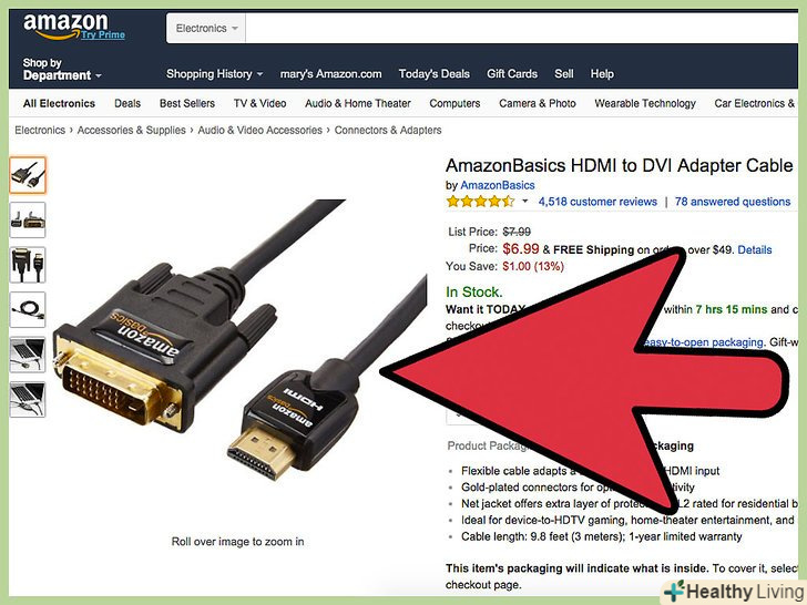 Придбайте адаптер HDMI-DVI, якщо потрібно.- Перевірте типи роз'ємів на ваших компонентах. Переконайтеся, що в них є роз'єм HDMI. Якщо ні, то вам буде потрібно HDMI адаптер.