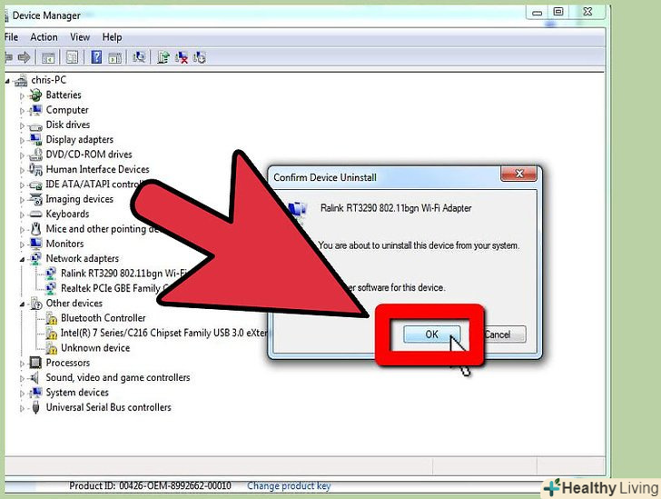Знайдіть Диспетчер пристроїв.у Windows 7 (та й в Vista) це можна зробити, натиснувши правою кнопкою мишки іконку "Комп'ютер" в меню Пуск і вибравши "властивості".
