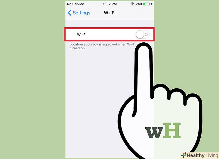 Клацніть по "Wi-Fi«, а потім пересуньте повзунок у» Wi-Fi" вліво.дочекайтеся, коли у верхньому лівому куті телефону з'явиться значок передачі даних по стільниковій мережі.- На Android-пристрої клацніть по повзунку у "Wi-Fi", щоб відключити бездротове з'єднання.