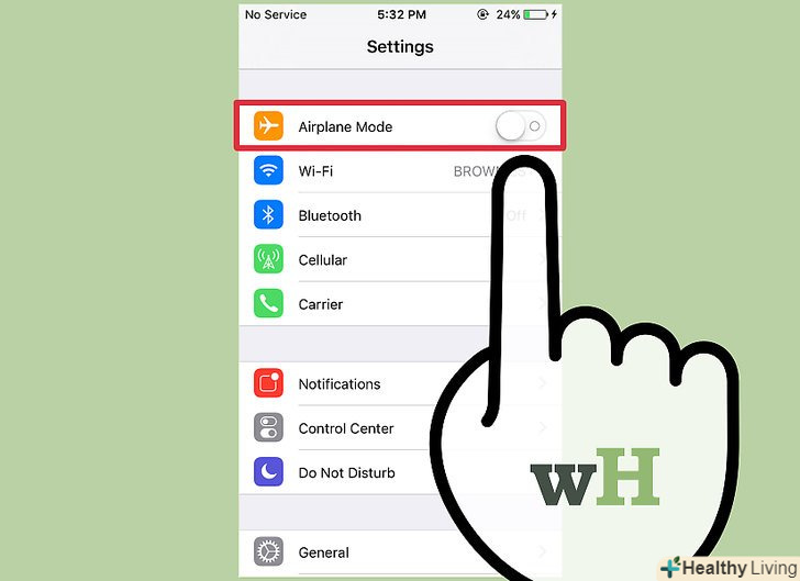 Активуйте автономний режим (Режим польоту), а потім вимкніть його.знайдіть опцію "режим польоту «у верхній частині програми» налаштування" на iPhone. Зачекайте кілька хвилин (значок бездротової мережі у верхньому лівому куті екрана повинен зникнути), а потім вимкніть режим польоту. Так ви скинете налаштування мережі, а DNS-кеш буде очищений.- На Android-пристрої в додатку» Налаштування "натисніть" ще «gt;»Режим польоту".