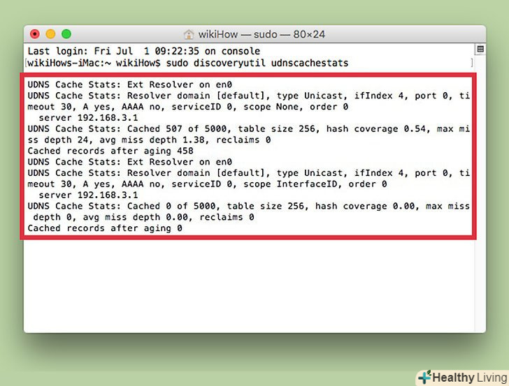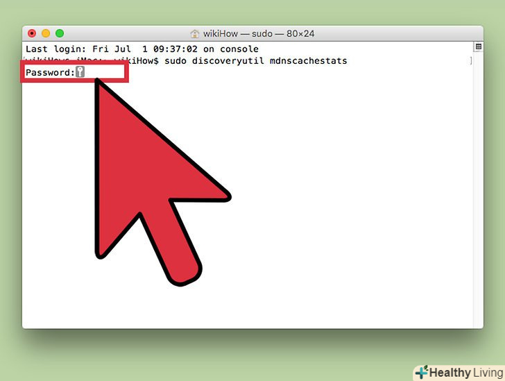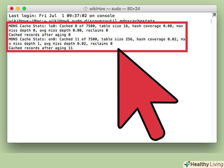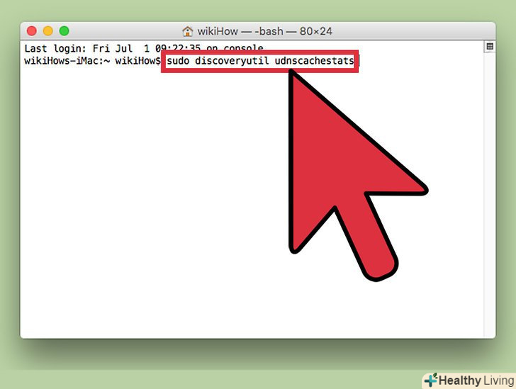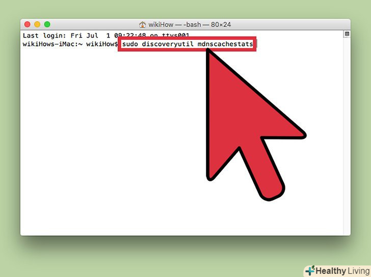 У терміналі введіть "sudo discoveryutil mdnscachestats". потім натисніть ⏎ return.- Команда "sudo" надає права суперкористувача, за допомогою яких можна отримати доступ до конфіденційної інформації про систему.