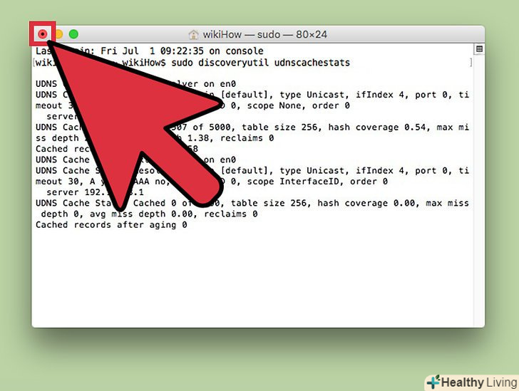Очистіть DNS-кеш (і).у терміналі введіть " sudo dscacheutil-flushcache; sudo killall-HUP mDNSResponder; say cache flushed». Потім натисніть ⏎ return. Так ви видалите дані веб-сайтів, що призведе до усунення помилок в роботі браузера. Ця команда працює в останній версії OS X (10.11).[5]- Наведена вище команда призведе до очищення обох розділів кешу (UDNS і MDNS). Так можна позбутися від поточних помилок і запобігти майбутнім, тому необхідно очистити обидва розділи кеша. Очищення кеша не позначиться на роботі системи.