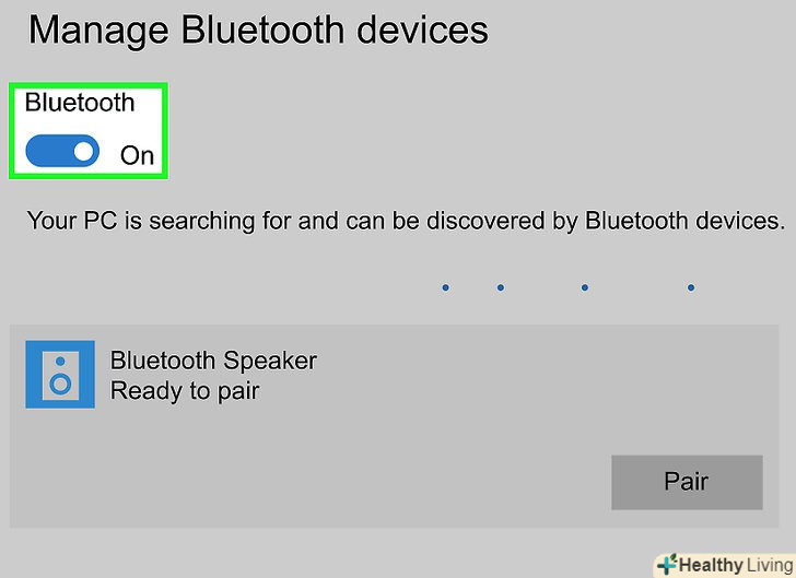 Пересуньте перемикач «Bluetooth»в положення «Включити».для цього клацніть по перемикачу в розділі "Bluetooth", який знаходиться у верхній частині сторінки.
