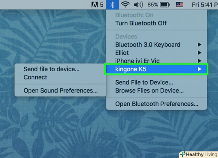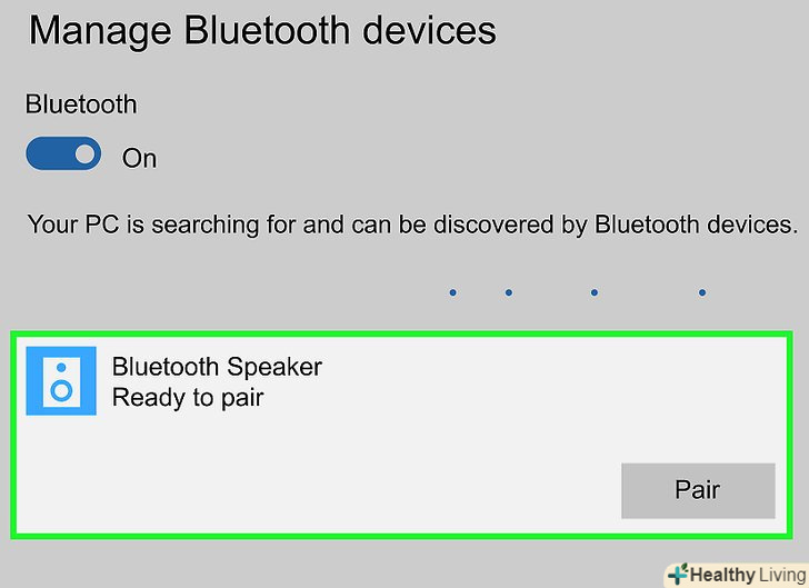Натисніть на ім'я свого пристрою.швидше за все, ім'я пристрою буде включати номер моделі та ім'я виробника.- Якщо ви не бачите пристрій, натисніть кнопку для сполучення або вимкніть і знову включіть Bluetooth на комп'ютері.