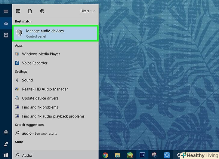 Відкрийте меню «Пуск»і введіть аудіо. В меню «Пуск» з'явиться кілька результатів пошуку.