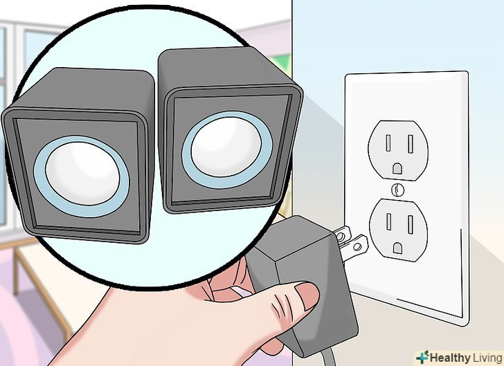 Якщо потрібно, підключіть аудіопристрій до джерела живлення.Колонки і конденсаторні мікрофони потребують додаткової електроенергії (наприклад, від розетки або USB-порту комп'ютера).- Можливо, Вам потрібно буде натиснути кнопку живлення на корпусі аудіопристрою.