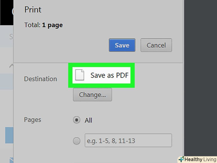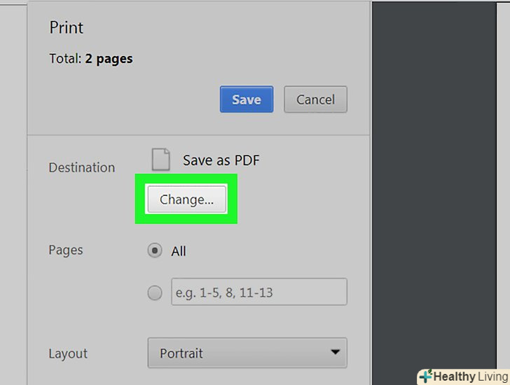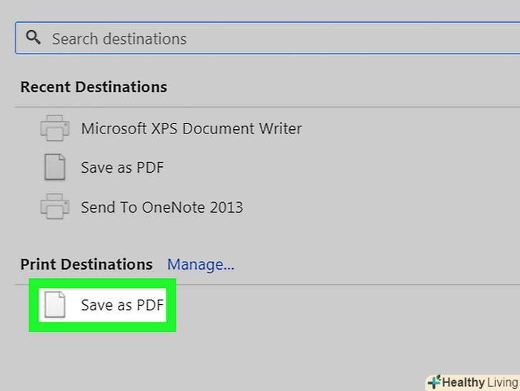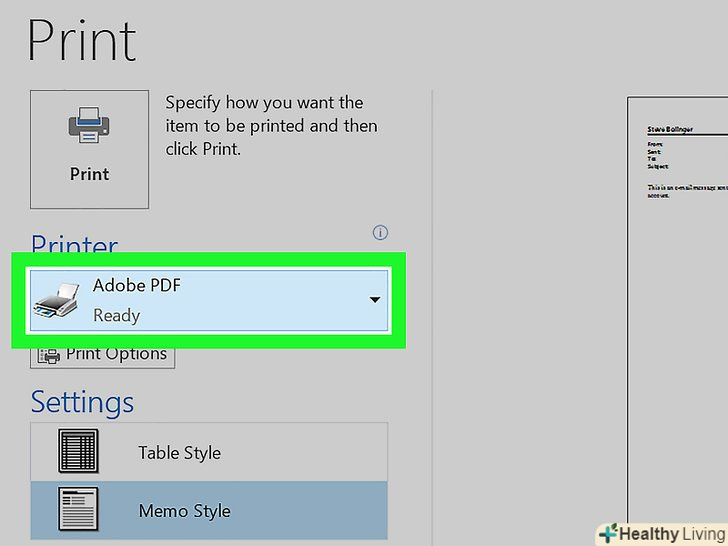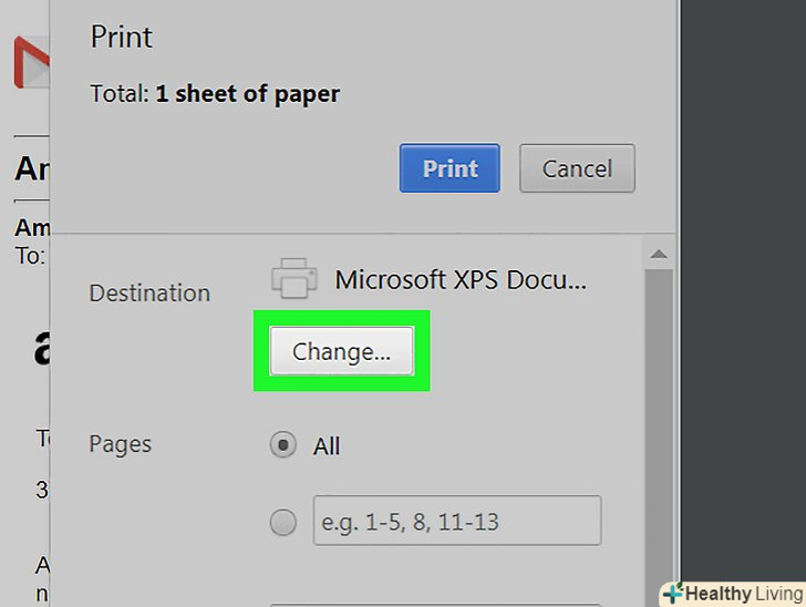 ВиберітьДрук в PDF В меню «Принтер».на деяких комп'ютерах ця опція називається "експорт в PDF», «зберегти в PDF»або "друк Microsoft в PDF".- Можливо, вам доведеться натиснути "Змінити", щоб вибрати принтер.