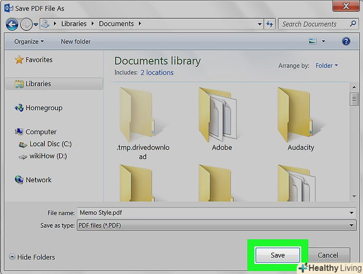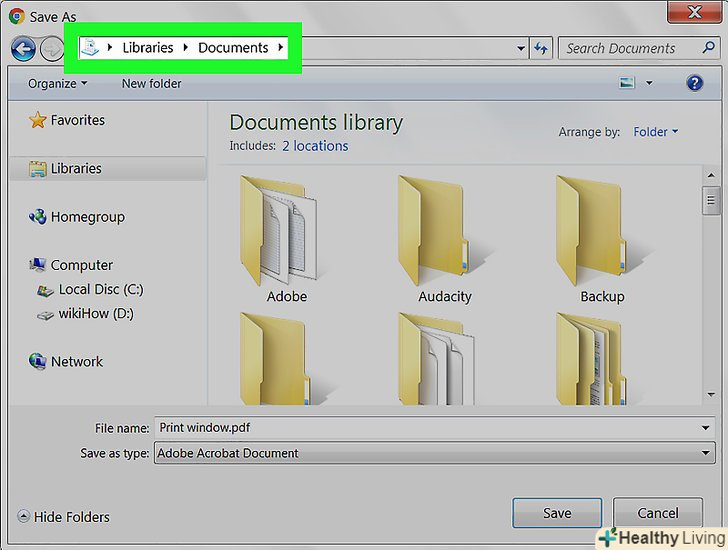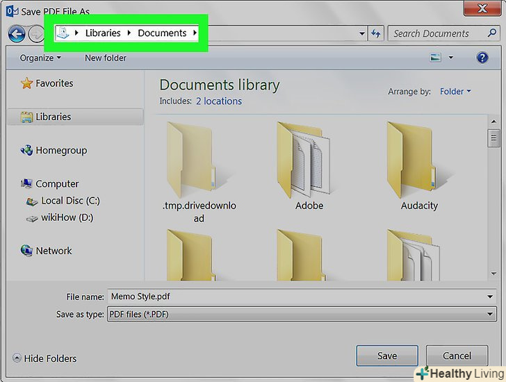 Введіть ім'я файлу і натиснітьЗберегти. лист буде збережено в зазначеній папці як PDFфайл.