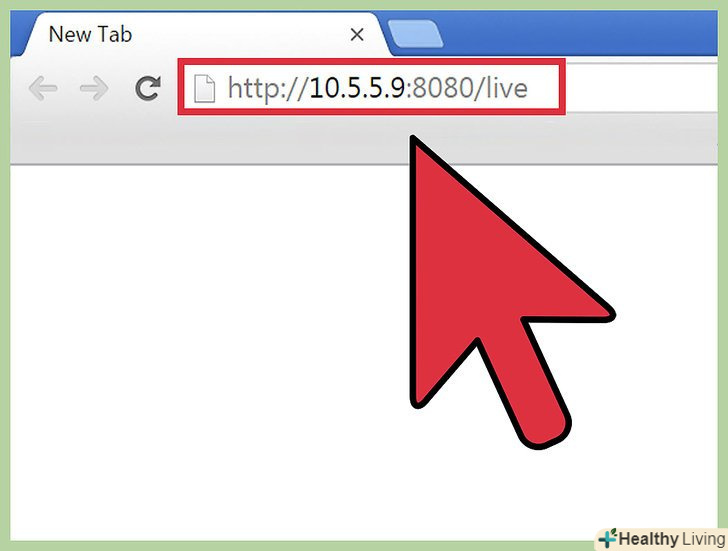 З'ясуйте URL-адресу трансляції GoPro.він знадобиться, щоб відправити потокове відео в VLC.- В адресному рядку веб-браузера введіть http://10.5.5.9:8080/live і натисніть клавішу Enter.