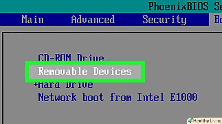 Знайдіть вкладку або опцію «Boot order "(порядок завантаження).перейдіть на вкладку "Boot order" за допомогою клавіші з спрямованою вправо стрілкою або знайдіть опцію "Boot order" в одному з меню на головній сторінці.- Можливо, спочатку потрібно перейти на вкладку " Advanced "(Додатково), щоб знайти меню «Boot order» (Порядок завантаження).