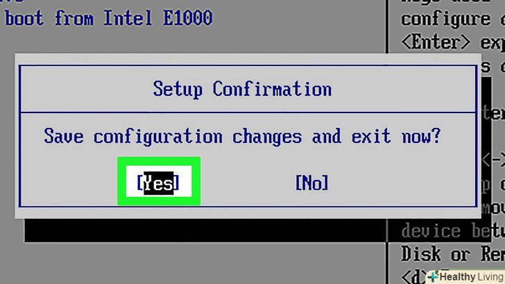 Збережіть зміни і вийдіть з BIOS.для цього в списку клавіш знайдіть клавішу, яка відповідає за опцію» Save and Exit " (Зберегти і вийти).- Можливо, вам доведеться підтвердити цей крок, натиснувши іншу клавішу.