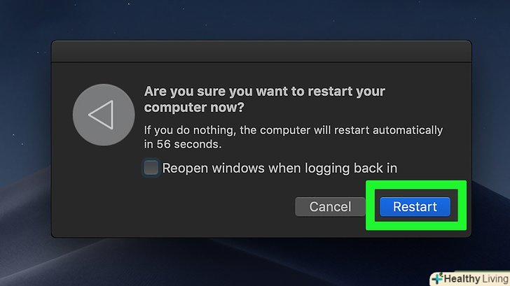 Клацніть поПерезавантаження.ця опція знаходиться в меню. Комп'ютер піде на перезавантаження.