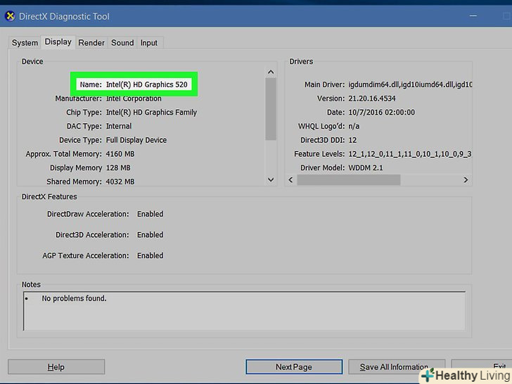 НатиснітьТак У вікні із запитом.система визначить модель відеокарти. Відкриється нове вікно.- Можливо, комп'ютер підключиться до Інтернету, щоб порівняти вашу відеокарту з іншими на сторінці продукту.
