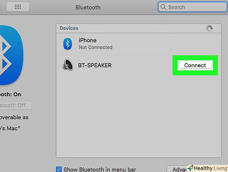 НатиснітьВідкрити налаштування Bluetooth.це остання опція в меню "Bluetooth".- Переключіть бездротові навушники в режим сполучення.для цього натисніть і утримуйте певну кнопку (або кнопки) на корпусі навушників. Якщо ви не знаєте, яку кнопку натиснути, почитайте інструкцію до навушників. Коли комп'ютер виявить бездротові навушники, вони з'являться в списку доступних Bluetooth-пристроїв.