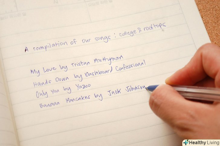 Укладіть в свою добірку послання (за бажанням).ви хочете розкрити свої почуття через плейлист? Якщо так, то уважно прослухайте слова кожної пісні, яку ви включаєте в список, і переконайтеся, що вони співзвучні тому, що ви відчуваєте.
