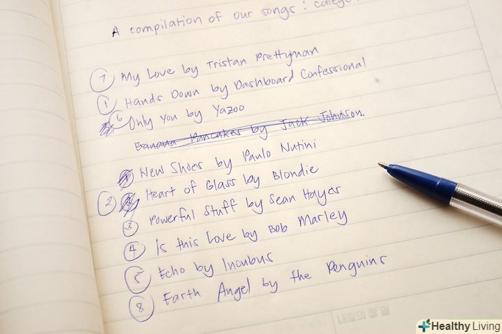 Відредагуйте список відтворення (за бажанням).якщо ви зібрали більше пісень, ніж необхідно, почніть прибирати ті, що не цілком підходять. Може бути, текст пісні злегка не той? Або через музику вона виглядає не на своєму місці серед інших? Чи може хто - небудь неправильно витлумачити сенс, закладений вами при виборі цієї пісні? Задавайте собі ці питання в процесі редагування списку.