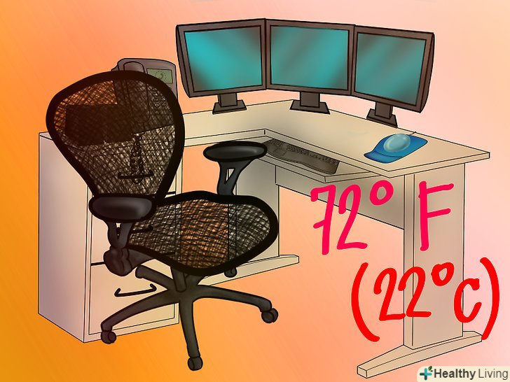- Температура. Повинно бути тепло. Холод змушує пальці застигати, німіти і сповільнюватися. Надмірне тепло, також як і холод, змушує мозок німіти і сповільнюватися. 22 градуси Цельсія оптимальна температура для більшості людей.[8] якщо в офісі занадто холодно, то потрібно тепло одягатися і носити такий одяг, щоб зап'ястя теж були в теплі і нещільно охоплені. Якщо занадто тепло, то носіть тонкий вільний одяг, включайте тихий вентилятор або відкривайте вікно.