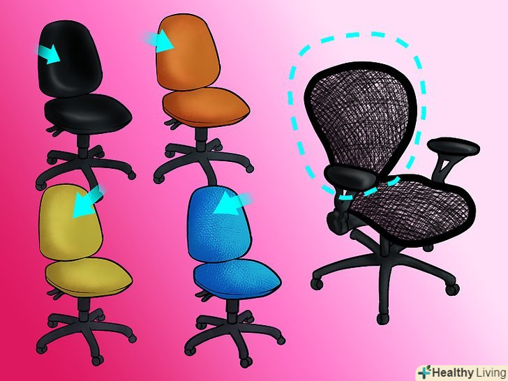 - Відрегулюйте висоту спинки. Часто спинки стільців має більш видатну частину, що йде до середини спини і більш поглиблену для плечей. Відрегулюйте спинку (або ж, на деяких кріслах спинка складається з різних частин) так, щоб вона була поставлена правильно.