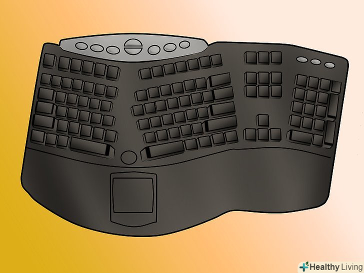 Виберіть клавіатуру.найкраще вибрати «ергономічний» стиль – така клавіатура вигнута вперед назовні і переважно піднята в центрі, але потрібен час, щоб до неї звикнути. Вона зберігає зап'ястя прямими і залишає їх в розслабленому стані при повороті, коли лікті трохи виставлені вперед, щоб у плечей була опора, а руки були розташовані в центрі клавіатури.- При кожному натисканні клавіші повинні реагувати миттєво. Не тисніть на них так, щоб вони «дійшли до дна»; ці удари віддаються по всьому тілу. Якщо ви не можете перестати так робити, то змініть клавіатуру на стійко-пружинну модель типу IBM модель M[7], по якій потрібно стукати сильніше. Хоча ці моделі дуже голосно працюють.