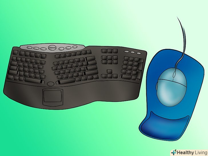 Виберіть мишу.якщо ви в основному друкуєте, то миша не є важливою для вас річчю. В ідеалі, це повинна бути оптична миша, яка працює більш послідовно, ніж миша з кулькою, з неопреновим килимком для плавного руху миші. Якщо ви лівша, то потрібно придбати миша, призначену для лівшів. Деякі користувачі вважають за краще трекболи (кульові маніпулятори), так як вони вимагають менше рухів зап'ястями, але вони менш точні і більш повільні, так як їм не можна збільшувати чутливість. Миша з кнопками, що відокремлені від широкої задньої частини, на якій знаходиться передня частина долоні (а саме, деякі моделі Apple) дозволяє руці і долоні залишатися в розслабленому стані.- Миша зі шнуром легше, і її легше пересувати, ніж бездротову. Також шнур оберігає мишу від падіння з такої маленької поверхні як, наприклад, з клавіатури, і не дасть їй загубитися. Простежте, щоб провід вільно лежав поруч з мишею, трохи провисаючи, так, щоб вага шнура не впливав на пересування миші.