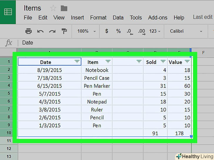 - Якщо ви хочете вибрати кілька стовпців, утримуйте ліву кнопку миші та проведіть вказівником миші над літерами стовпців у верхній частині екрана.