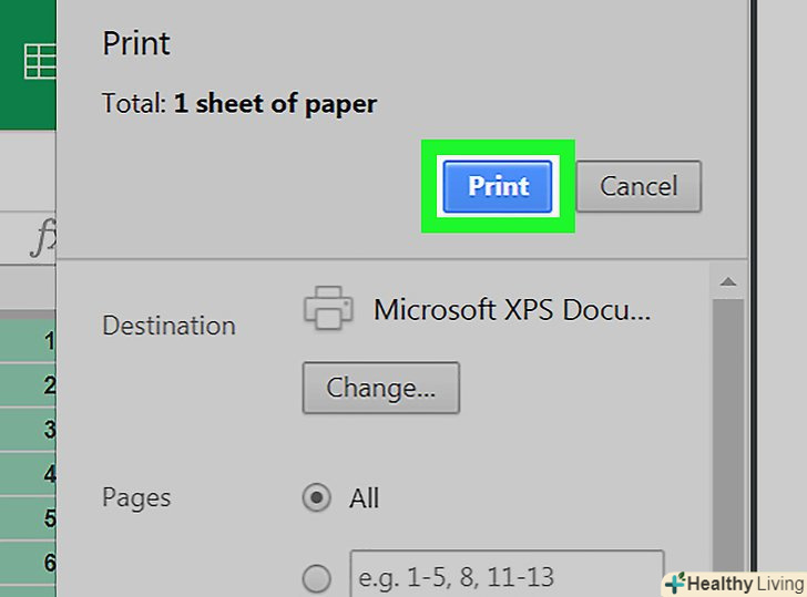 НатиснітьДрук. Будуть роздруковані тільки виділені комірки.- Можливо, спочатку вам доведеться вибрати принтер.