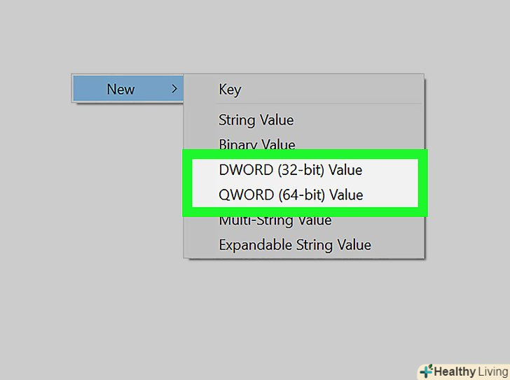 НатиснітьПараметр QWORD (64 біта) або Параметр QWORD (32 біта).виберіть опцію, яка відповідає розрядності вашої Windows.