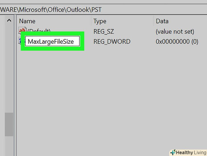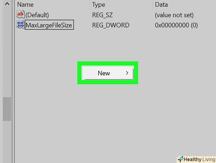 ВведітьMaxLargeFileSize натисніть ↵ Enter. буде створено запис реєстру під ім'ям MaxLargeFileSize. Тепер потрібно створити ще один запис.