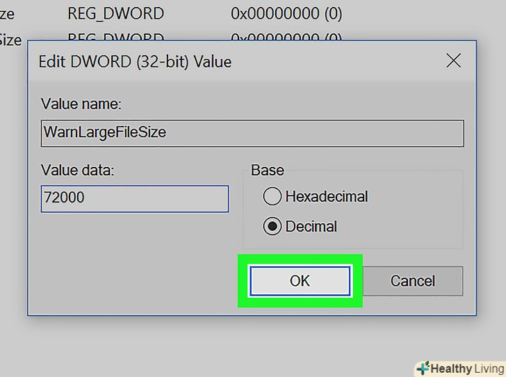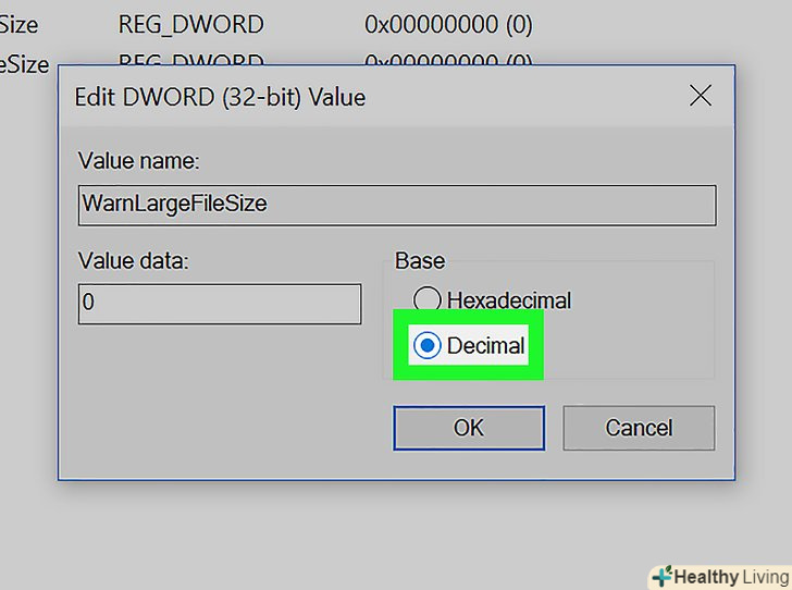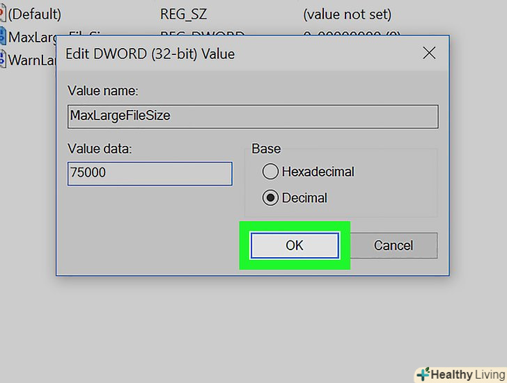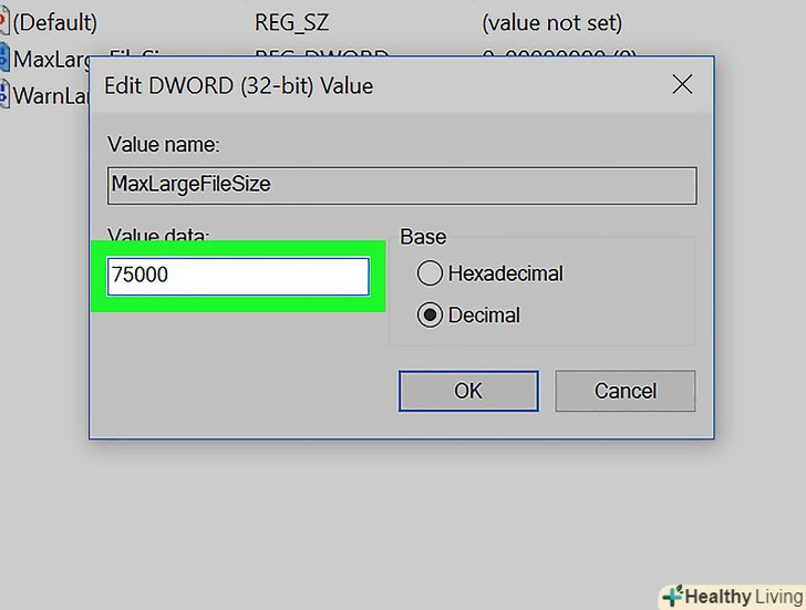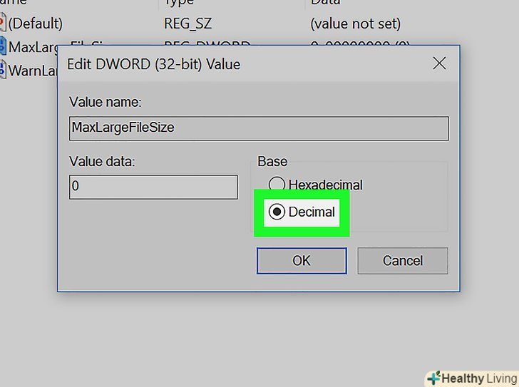 Двічі клацніть поMaxLargeFileSize. Відкриється вікно.