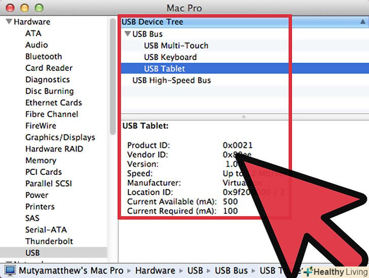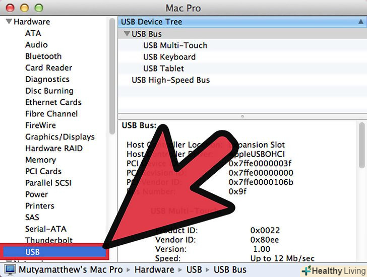 Перегляньте список портів USB на верхній панелі, щоб визначити, чи є на вашому комп'ютері порти USB 2.0. кожен порт USB буде позначений окремо як "USB 1.0," USB 2.0, " або " USB 3.0.”- Якщо ваші порти USB не позначені подібним чином, натисніть на кожен порт і перевірте значення біля слова "швидкість" на нижній панелі. Якщо швидкість має значення "480 Mbp / sec," цей порт USB відповідає швидкості 2.0.[2]