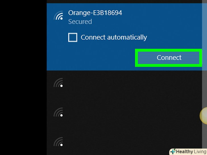 Клацніть поПідключитися.якщо точка доступу захищена паролем, введіть його.- Щоб комп'ютер автоматично підключався до обраної точки доступу (коли вона доступна), встановіть прапорець у «підключатися автоматично».
