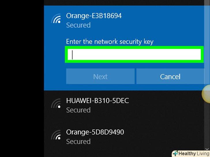 Введіть пароль і натиснітьДалі.якщо ви ввели правильний пароль, комп'ютер підключиться до Інтернету через обрану точку доступу.