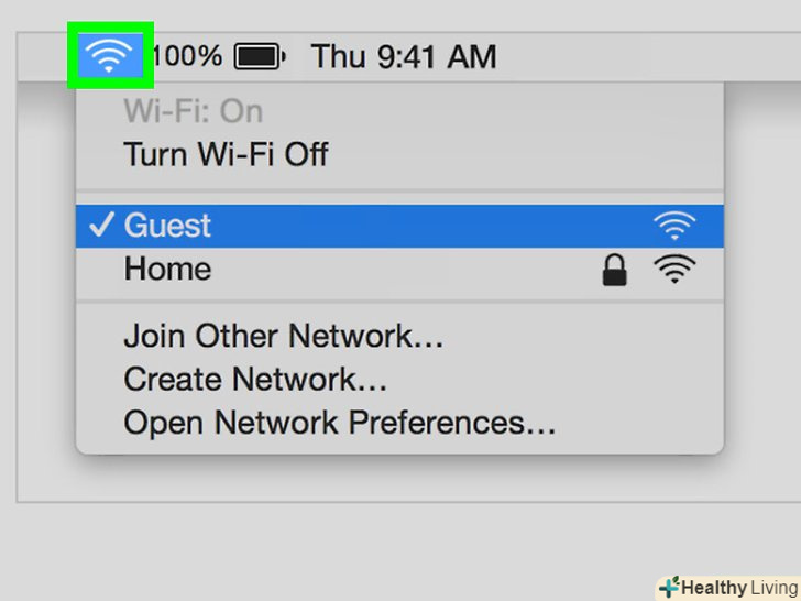 Натисніть на значок.ви знайдете його в рядку меню у верхньому правому куті екрана. Відкриється список доступних бездротових мереж.