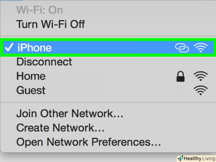 Виберіть потрібну точку доступу.якщо це ваш смартфон, торкніться його імені. Тепер введіть пароль.- Якщо пароль вводити не потрібно, швидше за все, це загальнодоступна мережа. Але деякі такі мережі (наприклад, в кафе або аеропортах) вимагають виконати додаткові дії. У веб-браузері введіть адресу www.ya.ru - якщо відкрилася сторінка з проханням прийняти правила або Створити обліковий запис, дотримуйтесь інструкцій на екрані, щоб отримати доступ до Інтернету. Якщо ж відкрилася Головна сторінка Яндекса, перейдіть до наступного кроку.