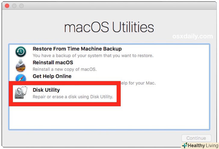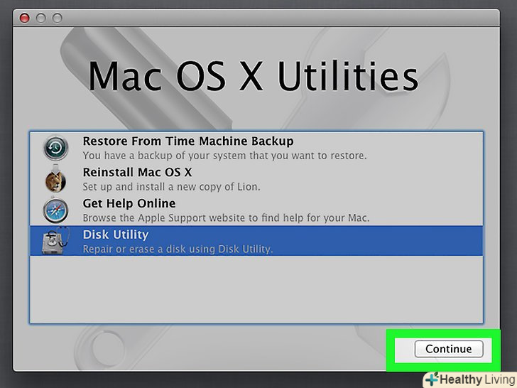 Клацніть поПродовжити.ця кнопка знаходиться в нижньому правому куті вікна. Відкриється вікно "Дискова утиліта".