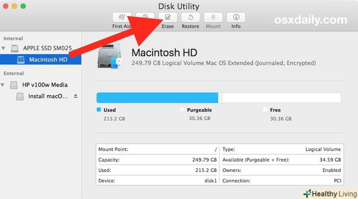 ВиберітьДискова утиліта. Ця опція знаходиться посередині вікна.