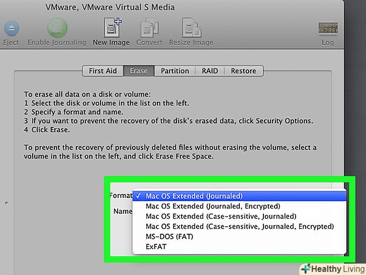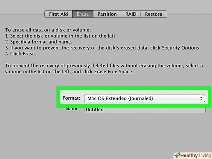 НатиснітьMac OS Розширена (журнальована).ця опція знаходиться в випадаючому меню.- Це основна файлова система, яка використовується на жорстких дисків комп'ютерів Mac.
