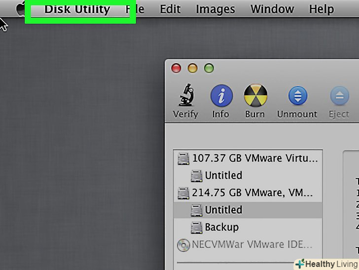 Клацніть поДискова утиліта. це меню знаходиться у верхньому лівому куті екрана. Відкриється випадаюче меню.