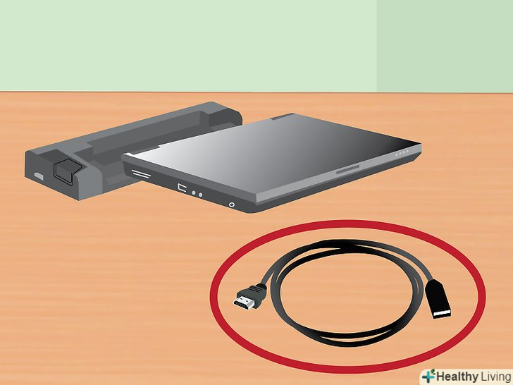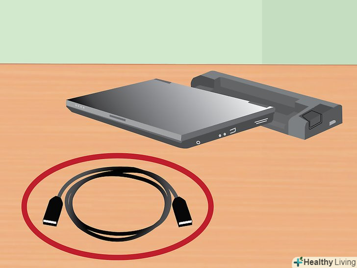 Якщо необхідно, використовуйте кабель для підключення вашого ноутбука.у цьому випадку просто підключіть кабель від станції до ноутбука, як ви підключаєте до нього будь-який периферійний пристрій (наприклад, монітор або клавіатуру).- Більшість сучасних док-станцій оснащуються або USB 3.0 кабелем, або USB 2.0 кабелем. Проте, існують винятки, тому якщо ви не впевнені, почитайте Керівництво по експлуатації вашої станції.